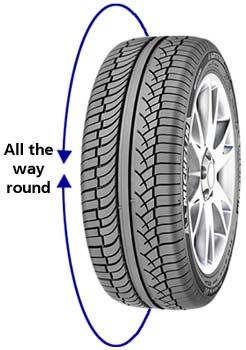 The third part of the law says that the 1.6mm measurement must be all the way round the tyre.